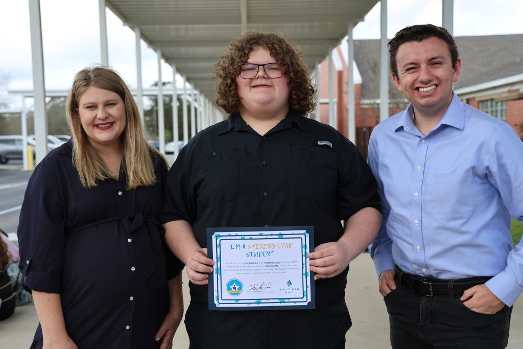 John Stidham, an eighth-grade student at Perdido School, was named Baldwin EMC’s Shining Star Student of the Month for March. He was nominated by the school’s principal, Charlotte Andrews.