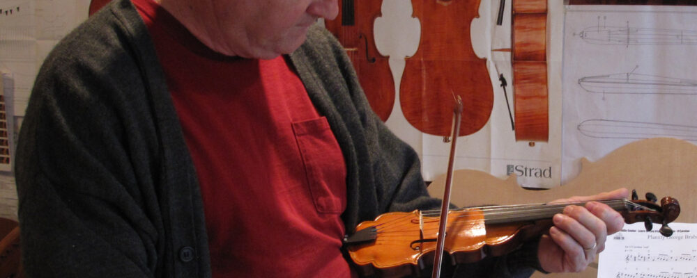 Thomas, who grew up on a farm in Missouri, says his parents always told him “you can do it if you put your mind to it.” He still lives by that philosophy and says he likes a challenge. After teaching himself to make violins, he started taking lessons to learn to play one about six months ago. “It may be an addiction,” he said, with violin music playing in his workshop and musical scores open on a stand while he works.